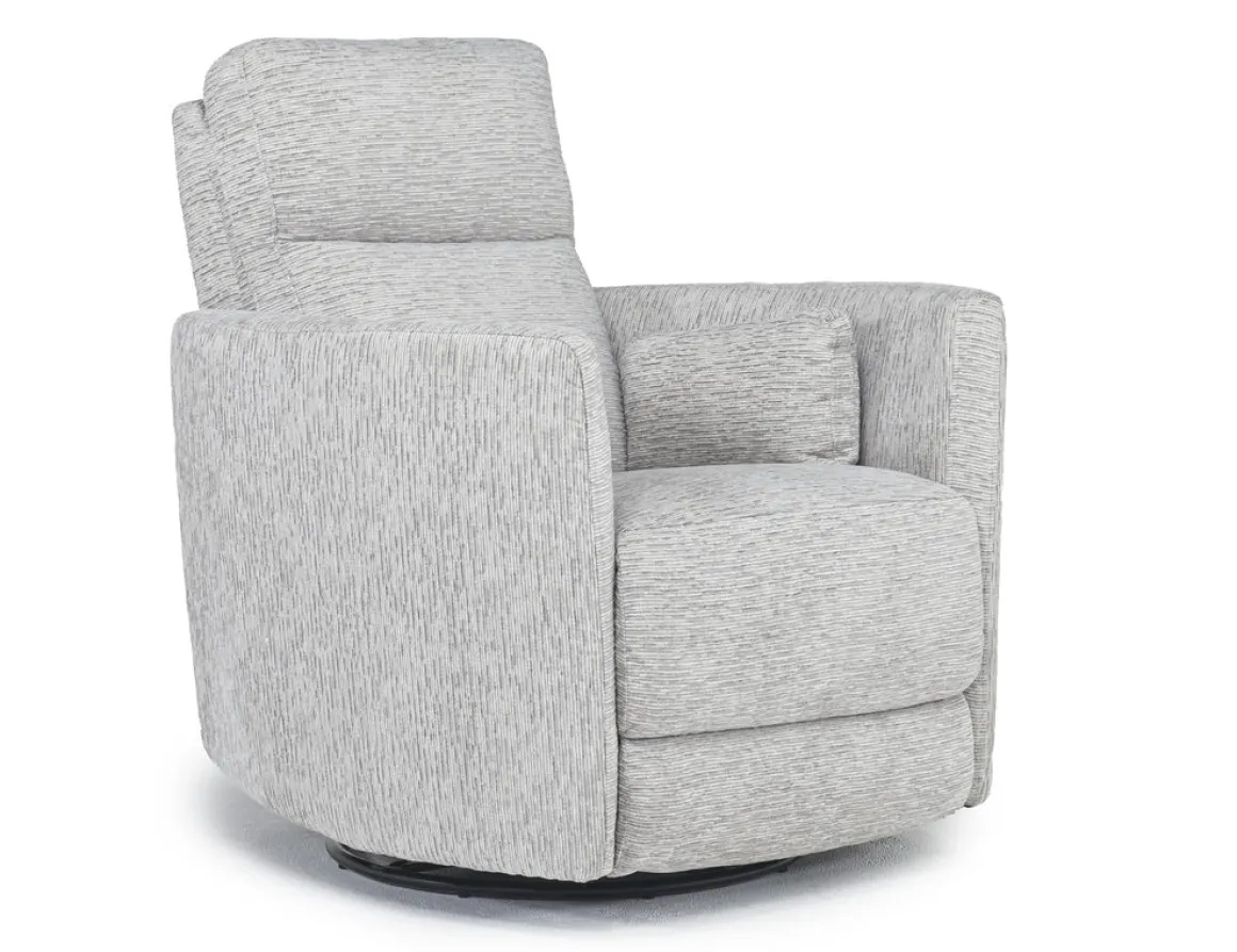 Swivel, glide, recline, and relax with the Opal Swivel Gliding Recliner in Dove. This charming gliding recliner offers the ultimate in comfort. With its modern-day appearance and easy mechanical recline, you’ll be ready to put your feet up and relax at the end of every long day. Lose yourself in style and relaxation.