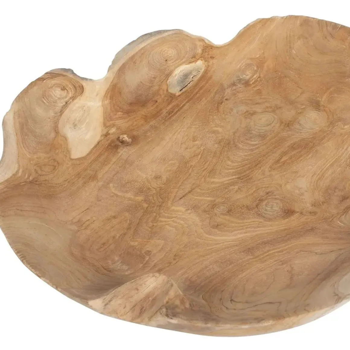 Embrace the raw beauty of nature with this handcrafted teak wood bowl. Featuring an organic, live-edge design, each piece is uniquely shaped by the tree’s natural form. This bowl brings warmth, character, and timeless elegance to any space. Because each is individually handcrafted, natural variation will occur from piece to piece. Safe for outdoor use.