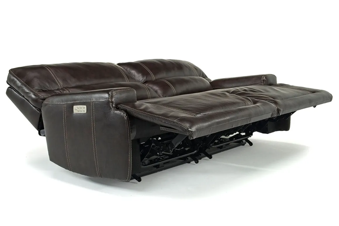 The Oslo 3 Power Sofa in Brown Leather offers luxurious comfort with 100% top-grain leather seating, dual-reclining seats, power headrests, and power lumbar support. Part of the modular, customizable Oslo Sectional.