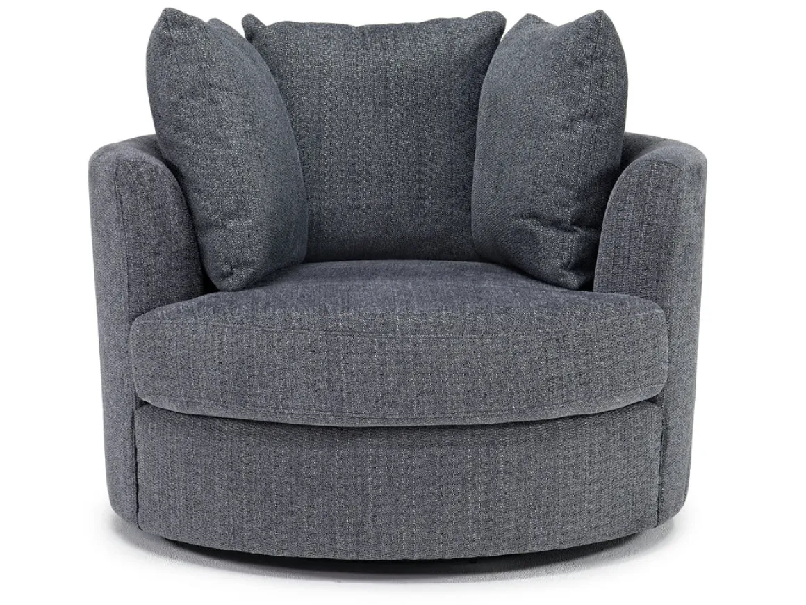 Every home needs a cozy chair (or two) like the Pasadena Accent Chair in Brimfield Denim. Made with just the kind of causal style that encourages relaxation, this chair is perfect for curling up in with the remote control. A denim finish is unpretentious and will complement any accent color from bold to monochrome. There’s nothing quite like cuddling in to your favorite chair at the end of the day. You know you deserve it! Product Details: • Foam seat cushions won’t lose shape • Durable fabric can stand up to years of regular use • Finish the room with other coordinating pieces from the Pasadena collection