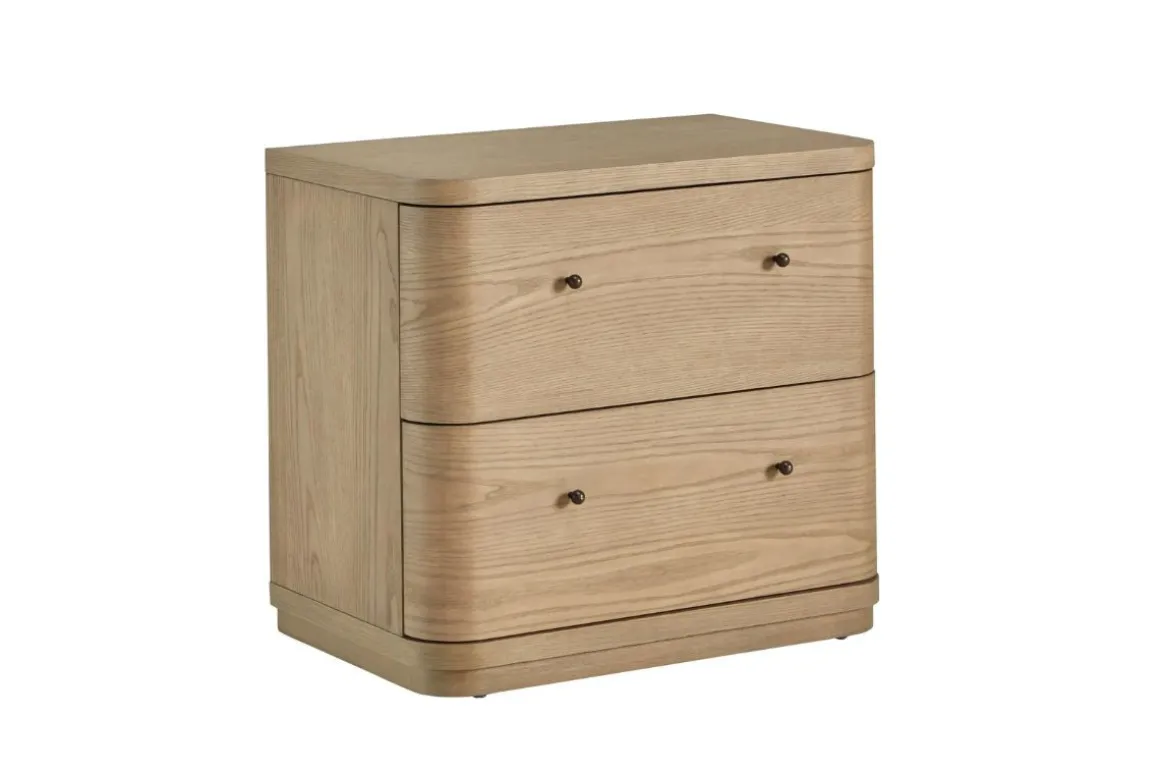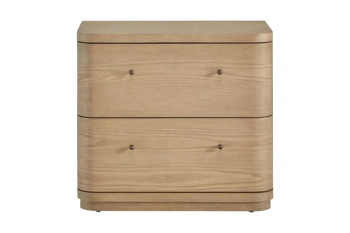 Enhance your bedroom with the understated charm of the Penny 2 Drawer Nightstand in Buff Cream. Crafted from ash wood veneer and solid Meranti wood, this nightstand is as durable as it is beautiful. The two full extension drawers provide ample storage space for your bedside essentials. With a kiln-dried frame construction ensuring lasting quality, this nightstand adds both style and functionality to your bedroom decor.Product Details:• Available in a timeless buff cream color• Transitional style and solid wood construction• Two roomy drawers for bedside needs