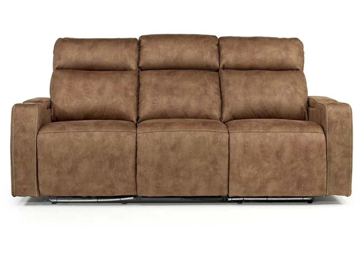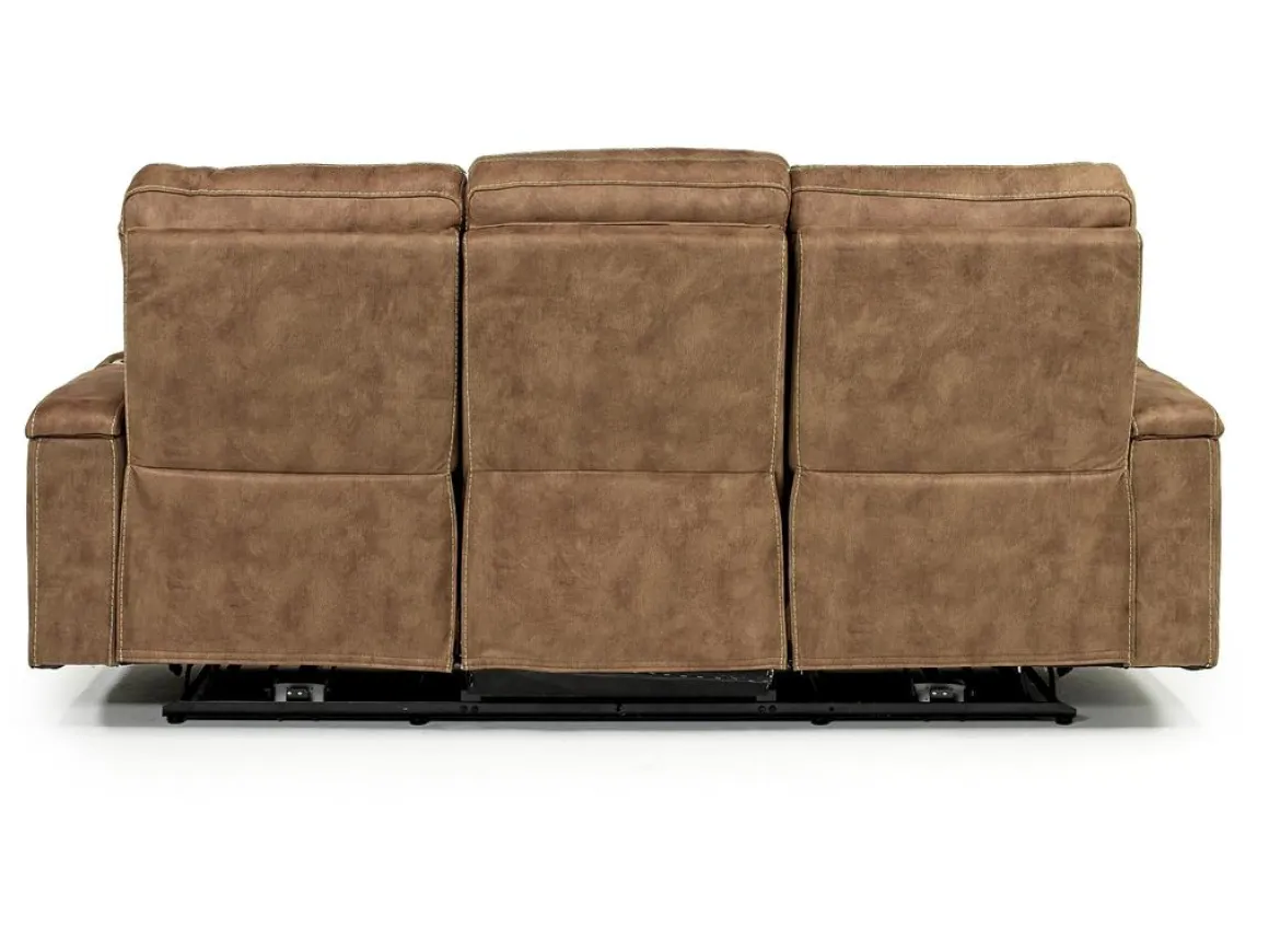 Bring life and comfort to your family room, den or home theater space with the Rhys 2 Power Sofa in Brown. Whether it’s for game day or movie binging, this sofa has everything you want, with two cozy, easy-button recliners, power functions and cup holders, all in rich brown fabric upholstery for a dignified look to your seating layout. Center seat features drop down table with reading lamps, USB outlets, and cupholders so you can make the most of your theater-like experience.Product Details:• Attractive addition to your modern, transitional or eclectic space• Recliners operate at the touch of a button• Underlighting offers stylish feature to match modern style• Dropdown table adds additional function• Durable, comfortable fabric upholstery over kiln-dried wood frame• Convenient power features, cup holders and storage• Weight capacity up to 360 lbs each seatsDimensions:• 83.5”W x 40.5”D x 41”H