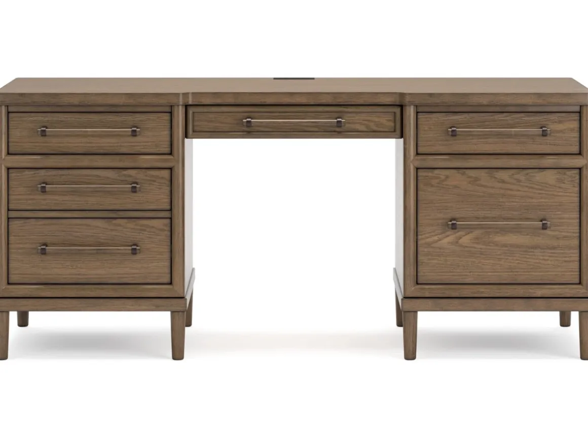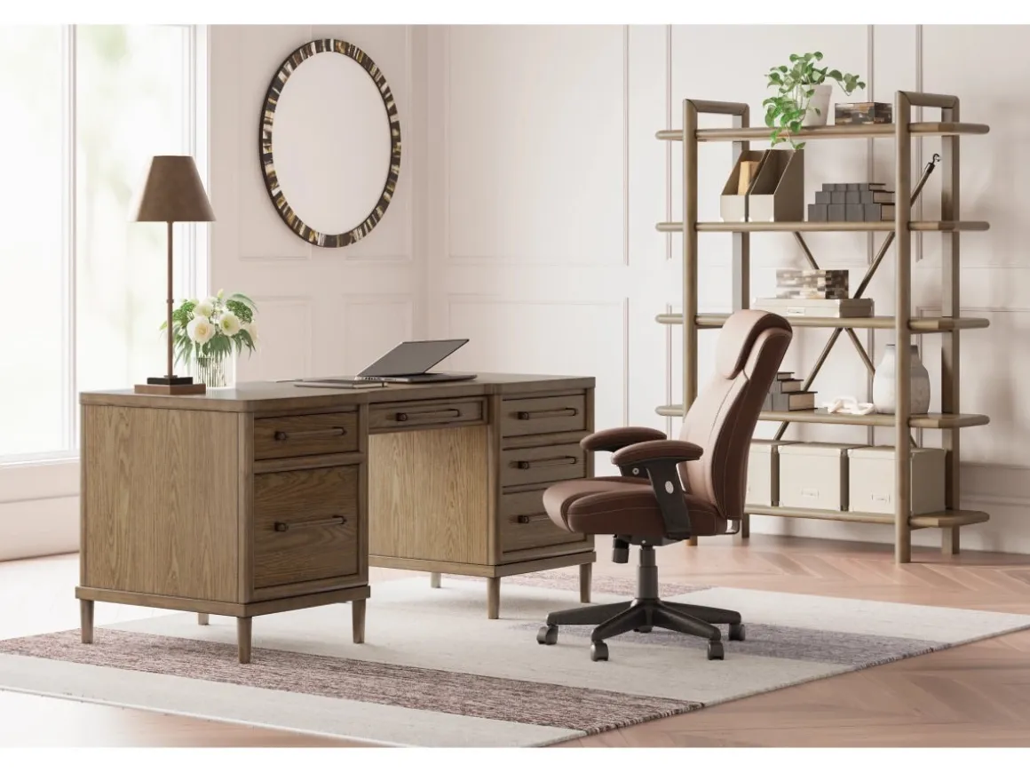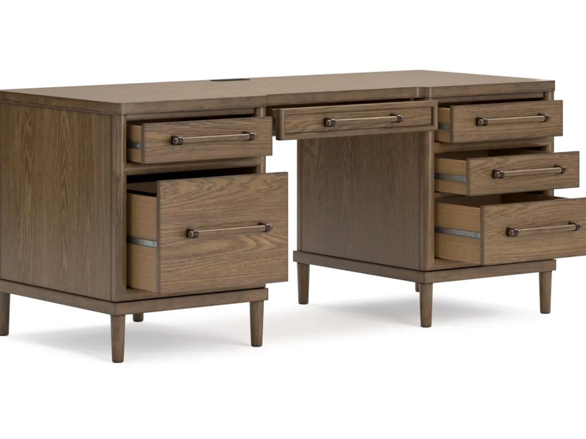 Upgrade your workspace with the Roanhowe Office Desk in Brown—a perfect blend of classic design and modern functionality. Featuring a warm brown finish and clean lines, this desk offers a spacious surface for productivity and style. Six drawers, including two large file drawers, provide ample storage for documents and office essentials, while sleek metal hardware adds a contemporary touch. Sturdy construction ensures lasting durability, making Roanhowe an ideal choice for home offices or professional settings.