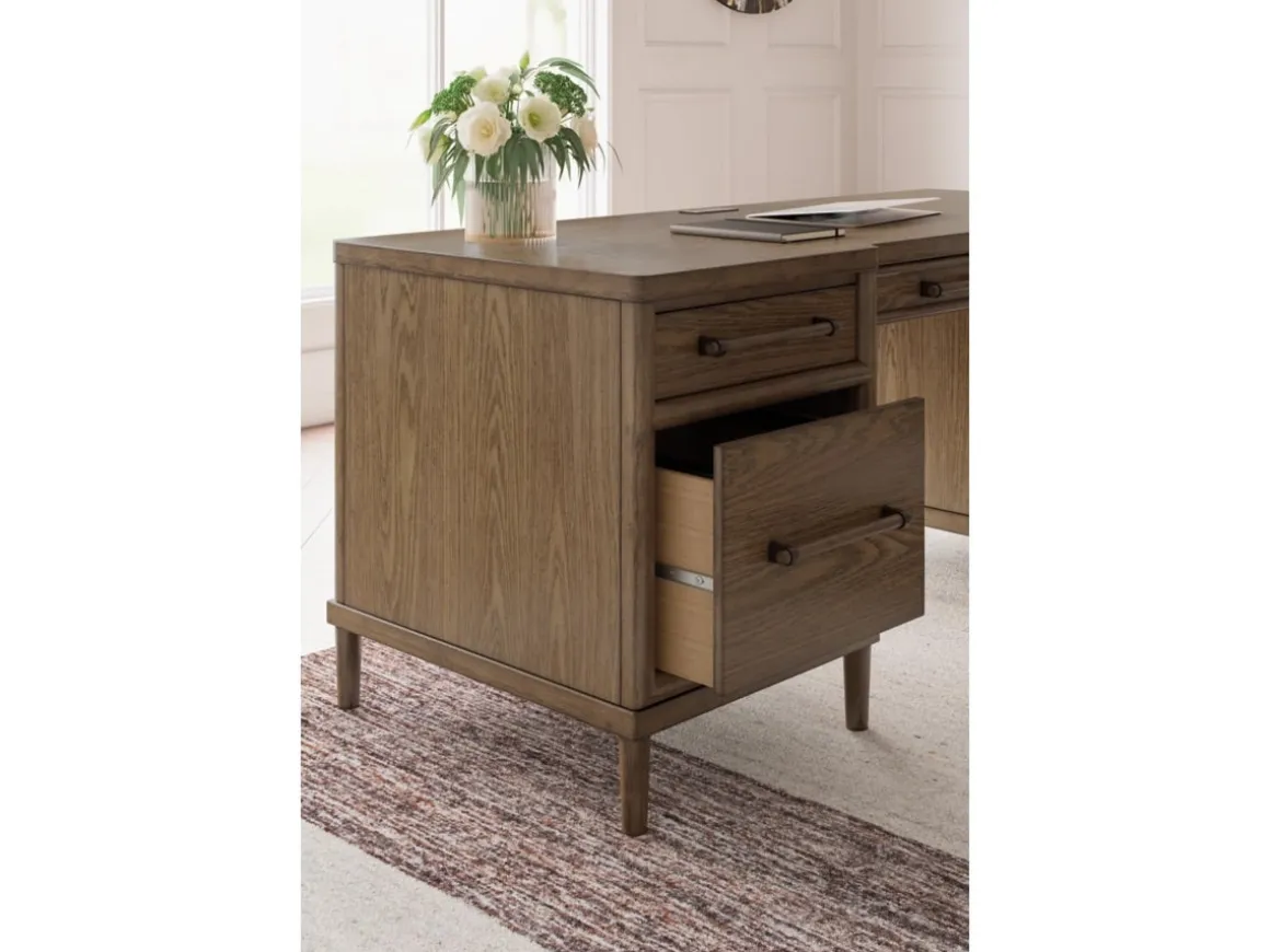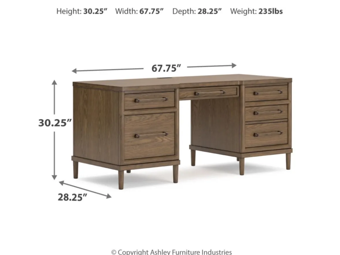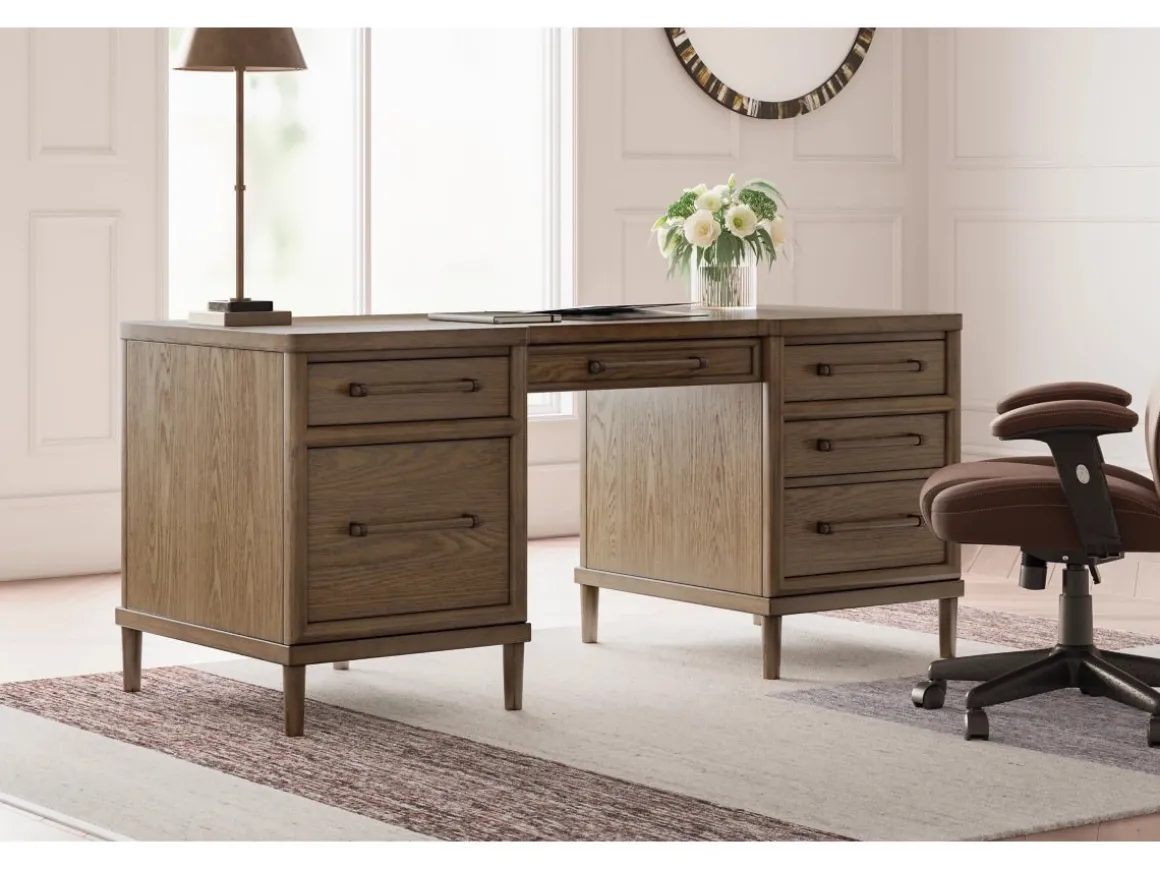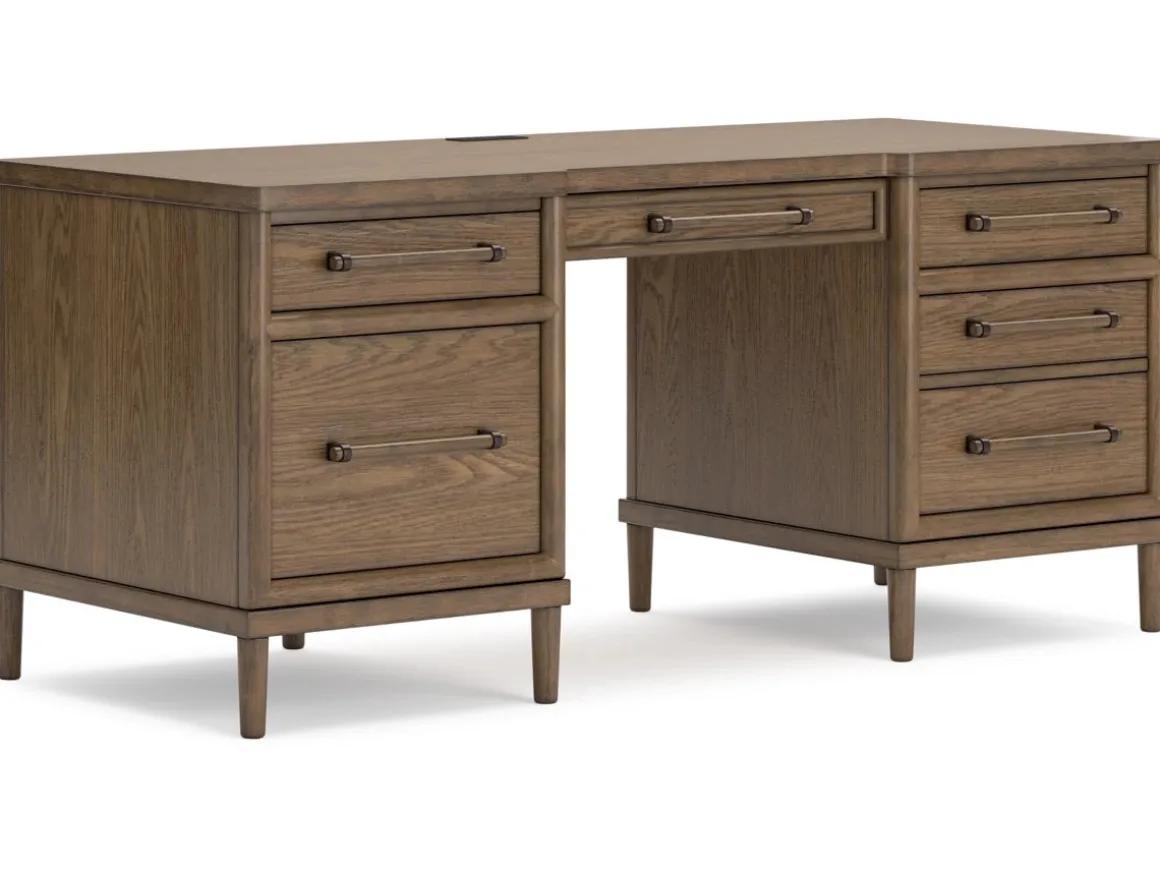 Upgrade your workspace with the Roanhowe Office Desk in Brown—a perfect blend of classic design and modern functionality. Featuring a warm brown finish and clean lines, this desk offers a spacious surface for productivity and style. Six drawers, including two large file drawers, provide ample storage for documents and office essentials, while sleek metal hardware adds a contemporary touch. Sturdy construction ensures lasting durability, making Roanhowe an ideal choice for home offices or professional settings.