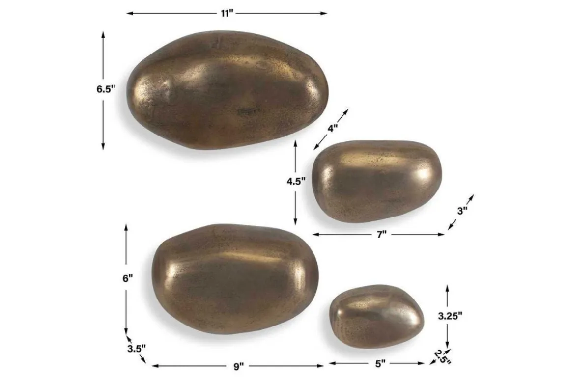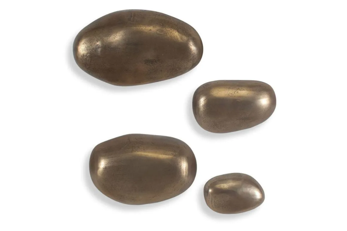 These stone shaped cast aluminum wall decor pieces feature a distinctive antique brass finish, adding a sense of age and character. Use multiple to create more dramatic displays.