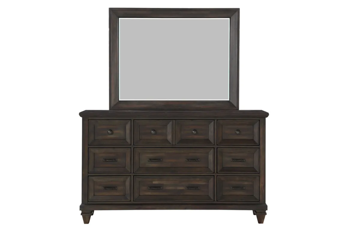 Brown doesn’t have to be dull. The carefully molded panels of this bedroom set proves it. The Sevilla Panel Bed, Dresser, Mirror & Nightstand in Walnut, Queen uses frame molding to create high and low light elements and beveled edges to contour the picture frame molding in eye-catching ways.