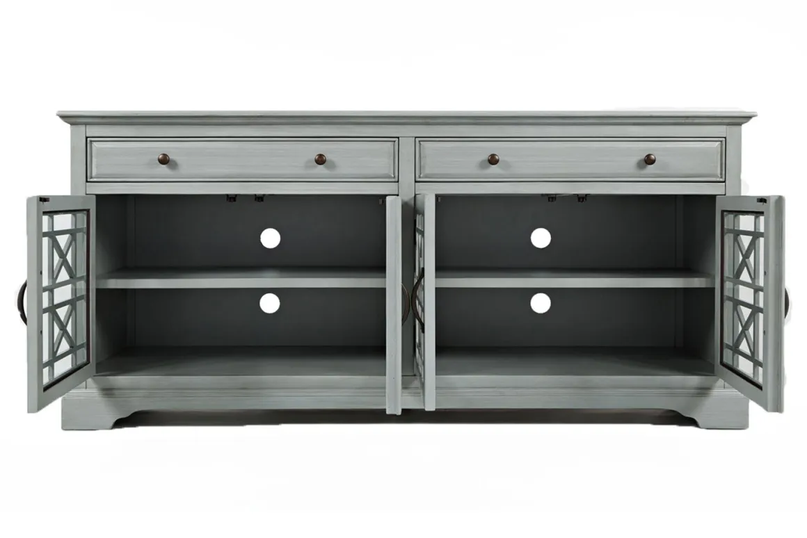 The Skyy Media Console in Gray, 70 Inch has a distinct design made to specifically stand out in your home. Each of the cabinets is made to both showcase the piece as well as whatever you may store on the inside. Bold colors made to last fully complete the accent of this piece.