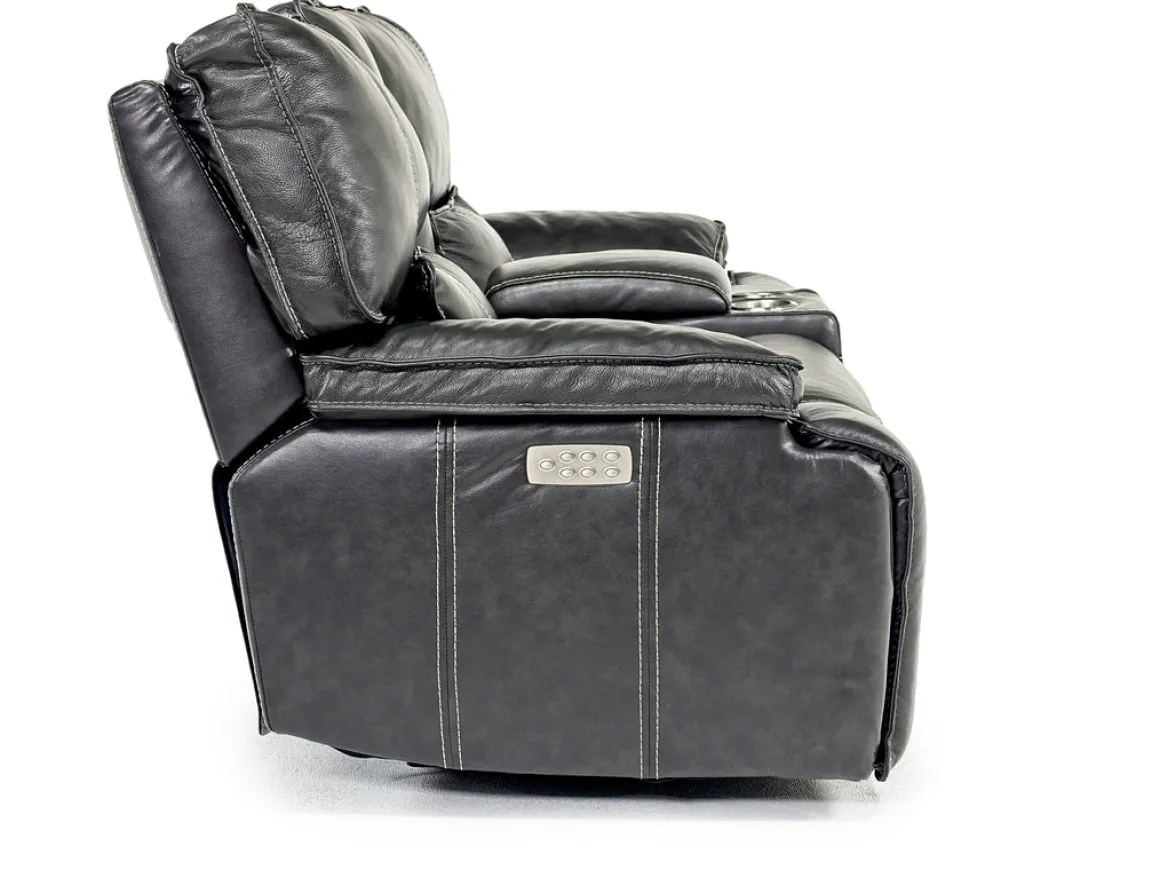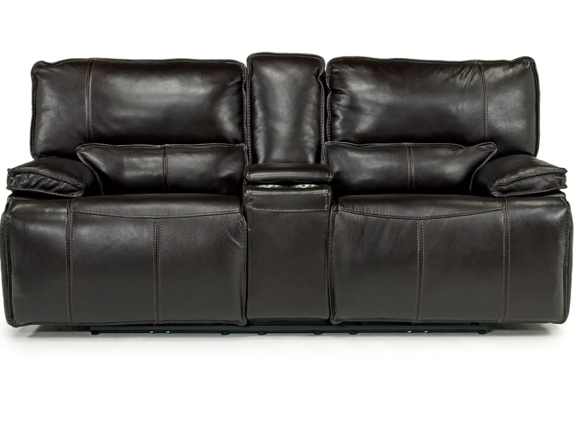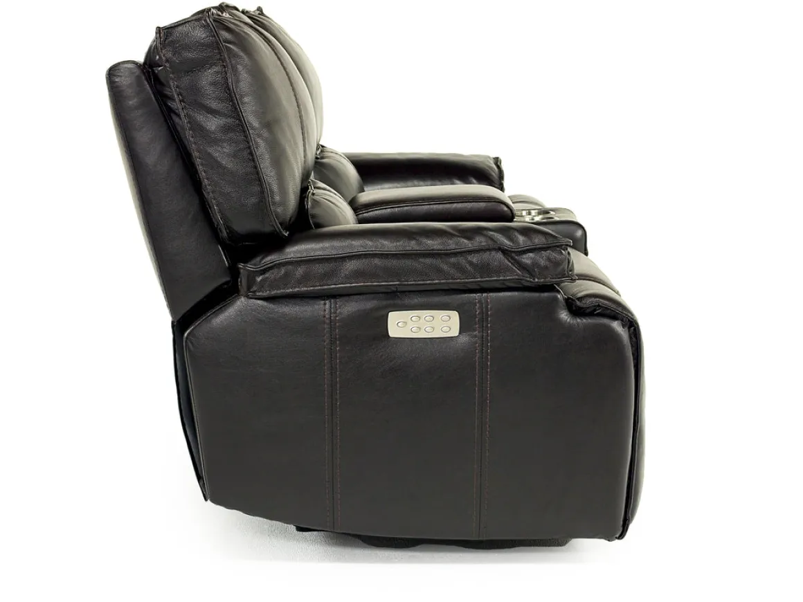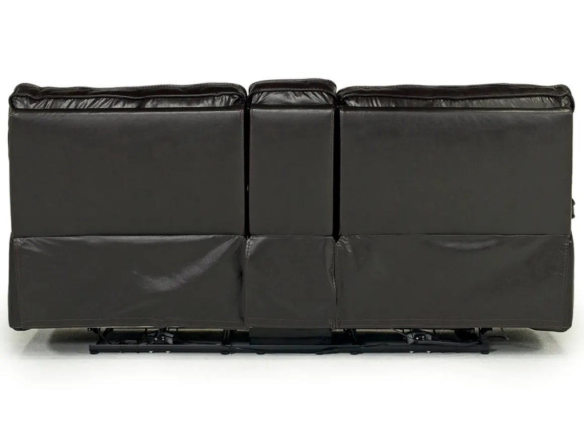 Some of the best pieces of furniture in your home tell a story, and the Sofia 3 Power Console Loveseat in Brown Leather weaves a compelling narrative of comfort and class. Using only the best natural top-grain leather, and superior craftsmanship shown in each stitch, the Sofia 3 Power Console Loveseat is the absolute perfect addition to your home. Not just a stunning piece that draws your eyes, but this loveseat is also incredibly functional, with a console that boasts two cup holders and a deep central pocket. But the main feature of this sofa is the ability to kick up your feet on each end piece with a simple push button mechanism.