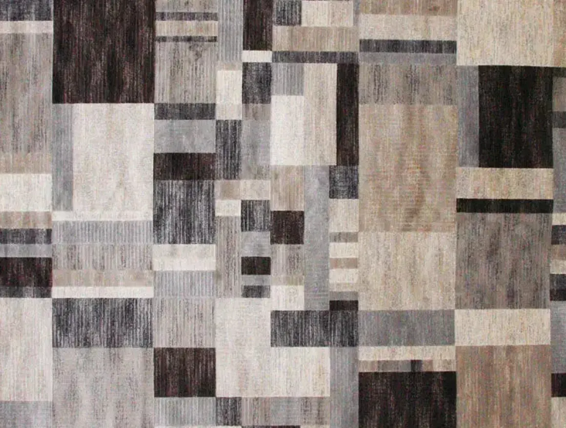 The Sonoma Rug in Ivory & Gray Layered Squares, 5 x 8 has squares and rectangles overlapping each other in neutral tones to create a fluid look that will pull your room together.
