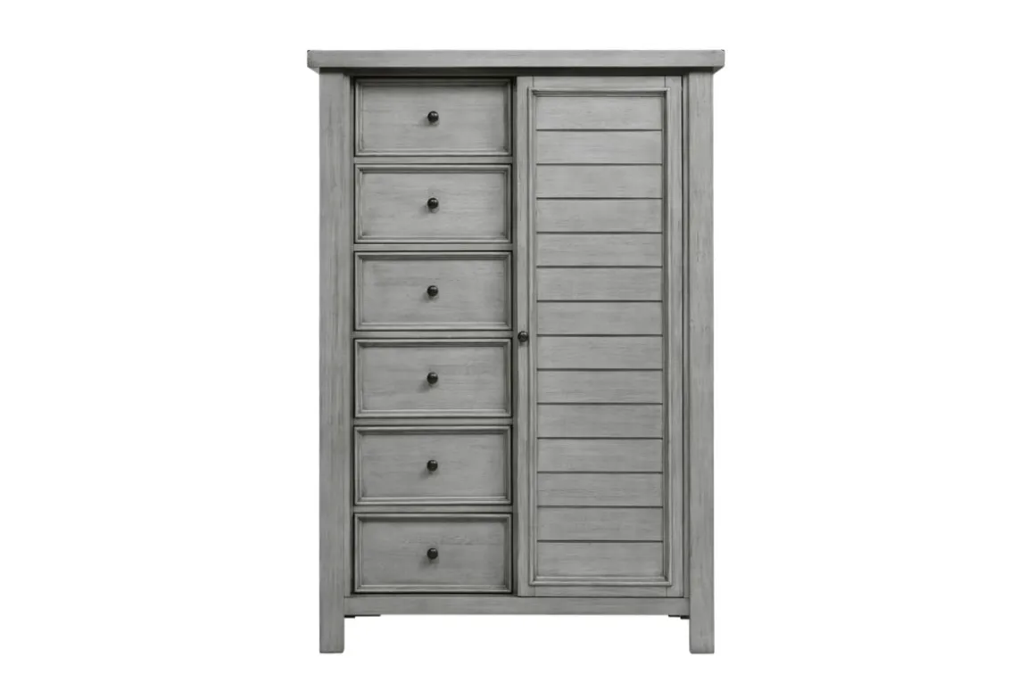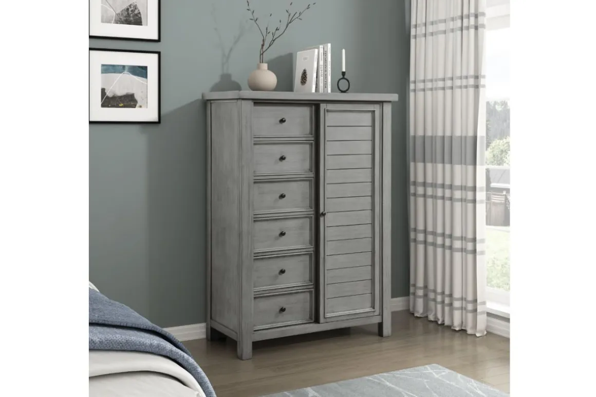Seldom does a chest look so exquisite while also being totally easy to use, but the Sonora Mans Chest in Espresso nails that perfect balance. Six large drawers stand out on the left side of the dresser, each drawer delicately joined together through durable English dovetail joints. The right side boasts a beautiful wood slat sliding door which easily glides on metal tracks. Behind the sliding door, there’s two more deep drawers and two adjustable shelves. This one chest could replace most of the storage in your bedroom.