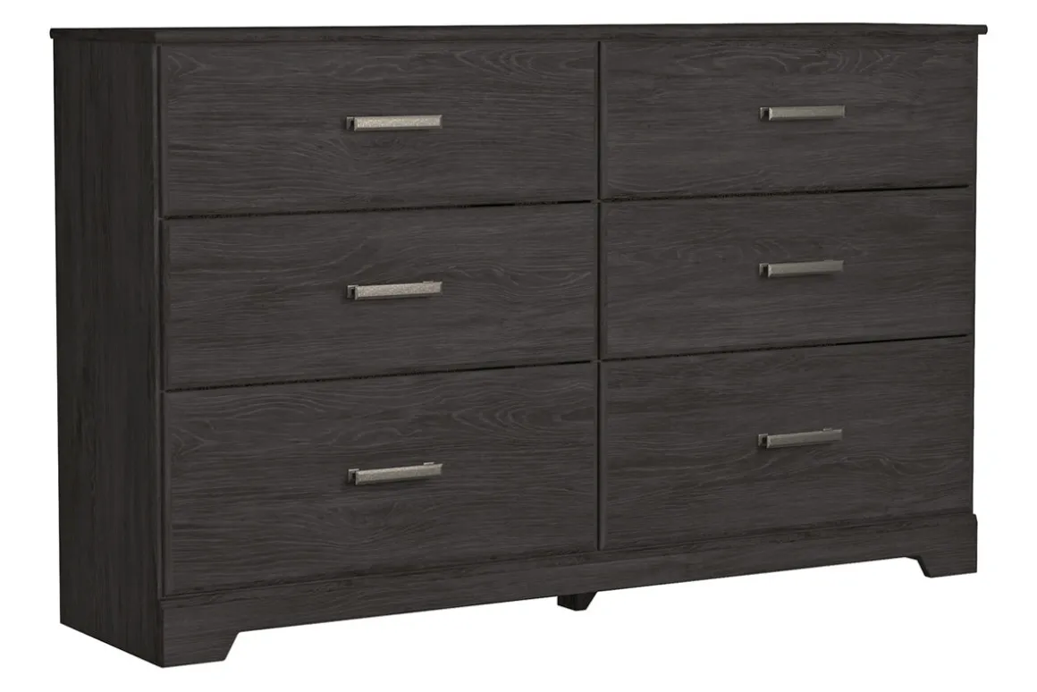 The strong and handsome Stelsie Dresser in Dark Charcoal will look right at home in your handsome room. With a shiny black finish and sleek drawer pulls, it looks classy right from the start. There are six drawers that offer plenty of storage space, and a smooth flat top that is perfectly suited for a lamp or a stack of books. Already wearing a fashionable black shade, it is ready to make your room look fabulous. Product Details: • Made with an MDF frame for lightweight stability • Euro glide drawers open smoothly • Engineered wood and laminate body provides durability Dimensions: • 59.53”W x 15.59”D x 34.46”H