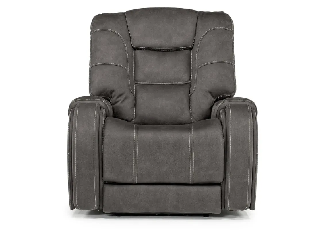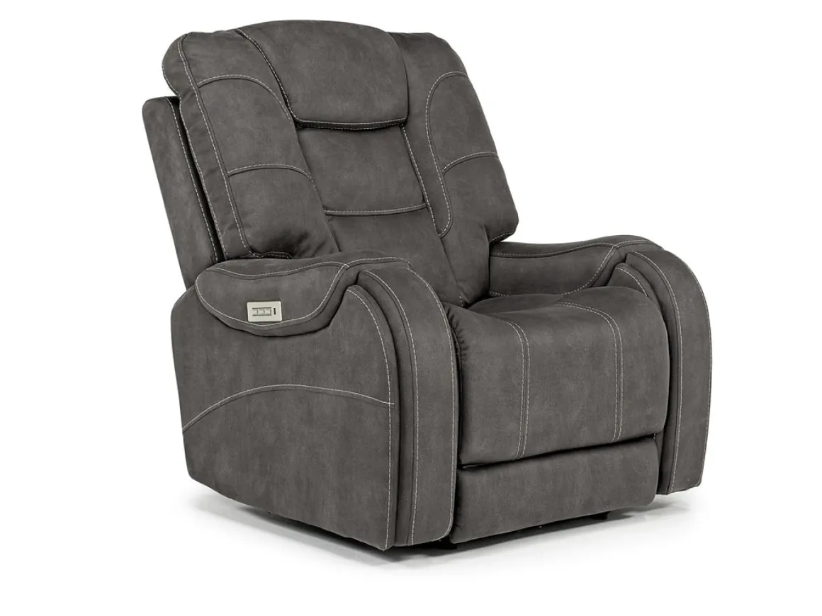 Nap in the lap of luxury. The luxurious STR 3 Power Recliner w/ Wireless Charger in Gunmetal takes you to an oasis of relaxation, no matter what’s happening around you. This style-rich, comfort-centric recliner has power control so you can find the perfect headrest, extended footrest and lumbar support positions. But it also meets today’s technological demands with bluetooth capability, a wireless phone charger and a USB port. A ”layflat” mechanism provides the apex of customized naptime enjoyment, and rest assured that its granite color and clean, classic yet cozy lines blend beautifully into your existing decor.