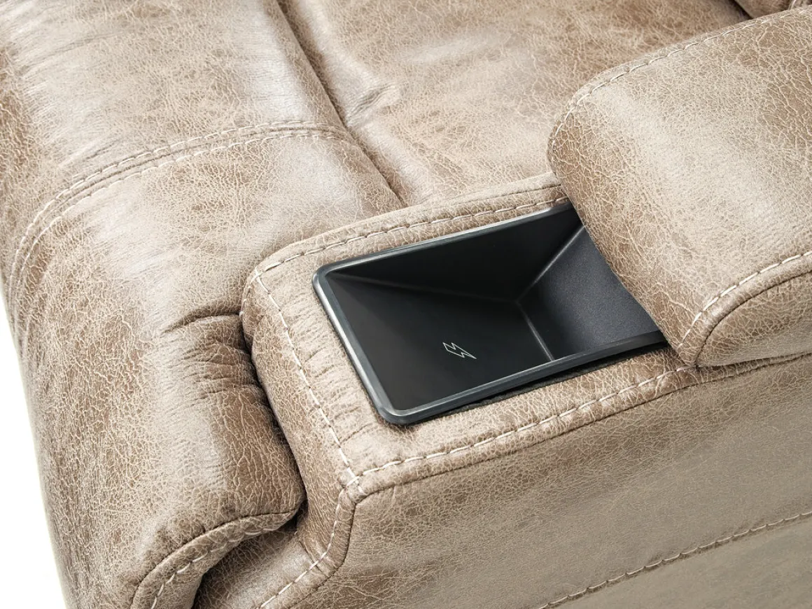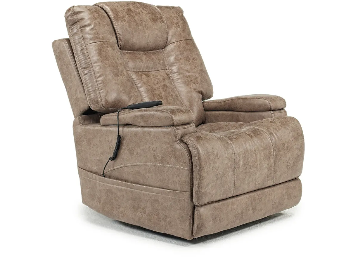 Need a little help getting in and out of your recliner, but don’t want to sacrifice comfort? The STT 3 Power Lift Chair in Mushroom cradles you in relaxing luxury while lifting up, bringing you closer to a standing position every time you get in or out of the chair. A convenient remote control lets you operate the lift or recline with ease so you find that perfect position to relax and enjoy life. The soft polyester upholstery not only looks elegant, but it surrounds you in absolute comfort so you can binge TV shows, read a great book, enjoy conversations or catch a nap. Each arm slides back to reveal a USB port on one side and a cup holder on the other side. The mushroom hue fits beautifully into most home decor styles.
