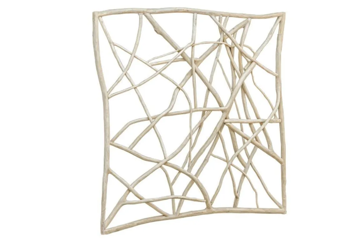 Made entirely of teak in a natural finish, these intertwined, organic branches form a captivating geometric design.
