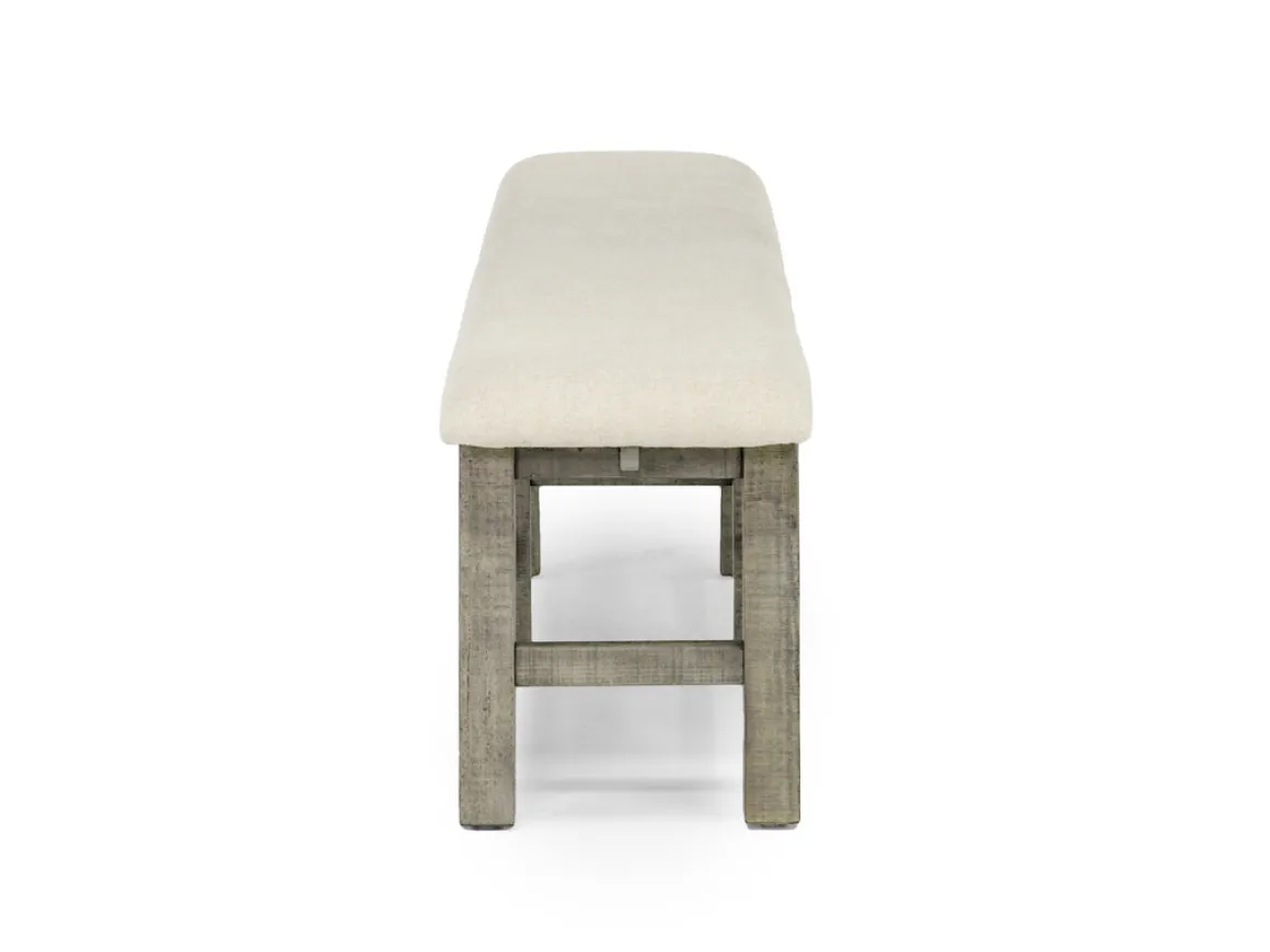 The Telluride Dining Bench in Driftwood is a stunning and versatile addition to your dining area. This transitional-style bench features a stylish driftwood color that complements any decor, crafted from pine solids and veneers for lasting quality. With a seat height of 19 inches and a depth of 15 inches, this dining bench provides ample space for seating and blends seamlessly with standard height tables. Easy to care for, simply dust with a soft, dry cloth or opt for professional cleaning to maintain its pristine gray finish.Product Details:• Padded upholstered seat• Foam density of 18KGS/M3• Sturdy straight wood legs