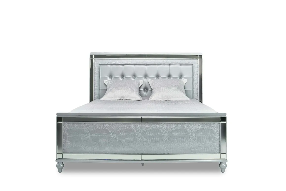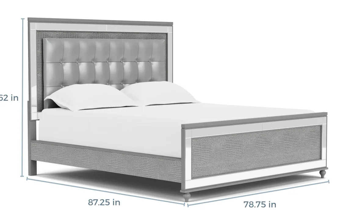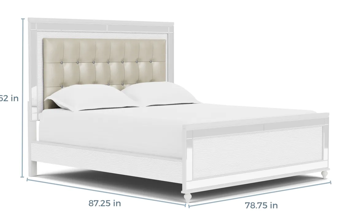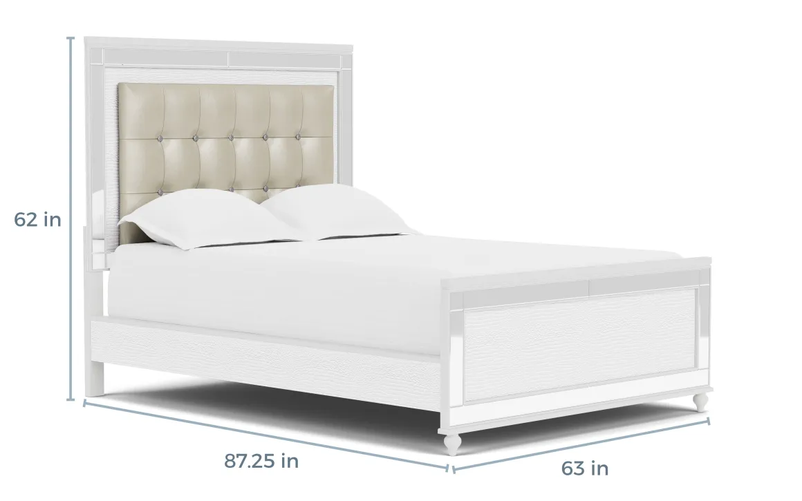Highlighting bold chrome and bright white colors, the Valentino Panel Bed in White, Twin is the most unique bed that you’ll ever find. A luminous white paint covers the majority of the bed frame, with striking, mirror-like chrome inlays on both the headboard and the footboard. The Valentino bedroom collection is specifically for those who want to make a bold statement with their bedroom furniture, so if you’re considering purchasing this bed, then you should also purchase the Valentino Chest in White to complete the ensemble.