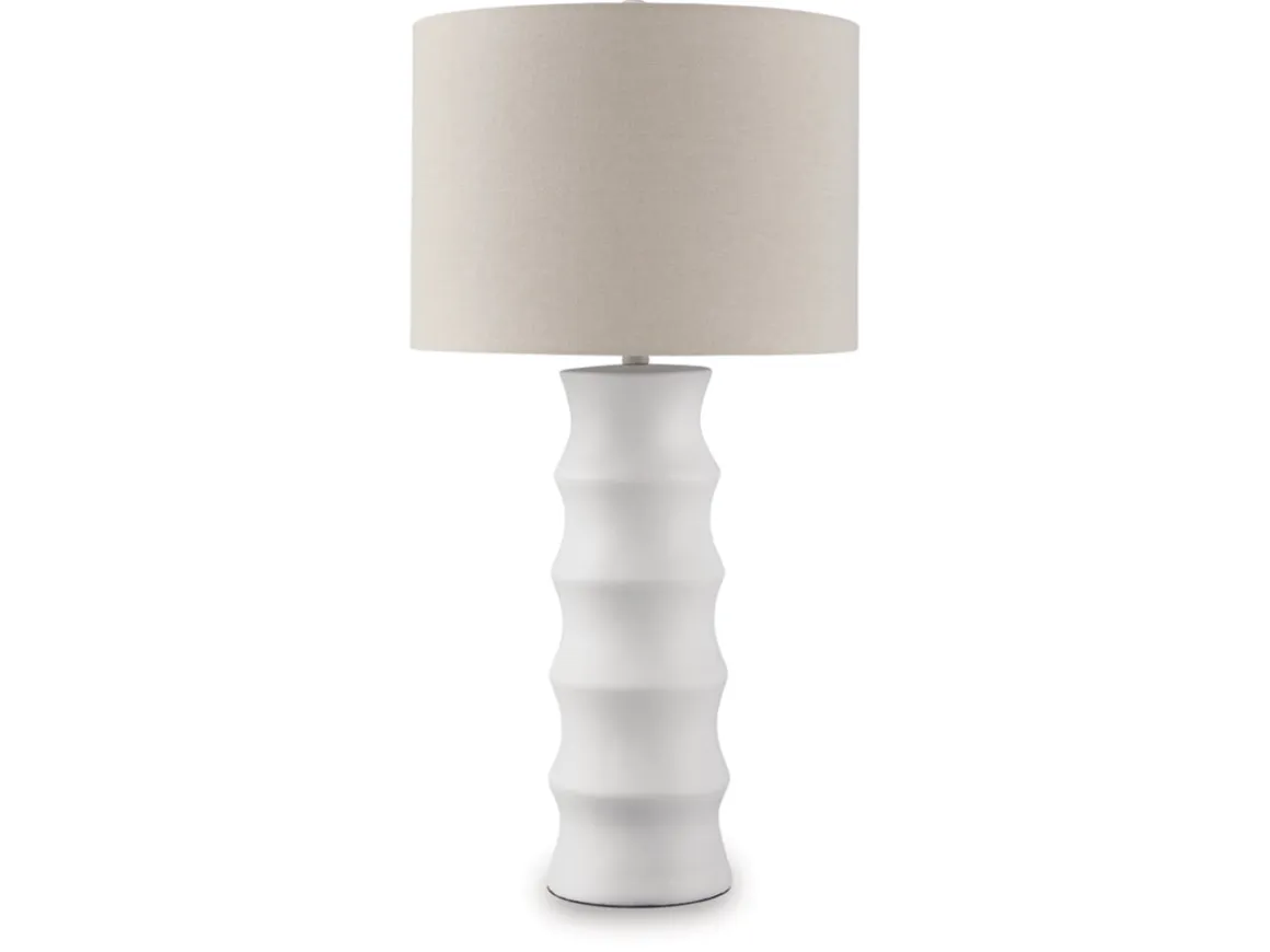 Add flair to your lair with the striking Veraleigh floor lamp. With a distinctive scalloped design and a fresh white finish, it’s cool from every angle. And its versatile style looks right at home everywhere from contemporary places to casual spaces. The matching table lamp is also a bright idea.
