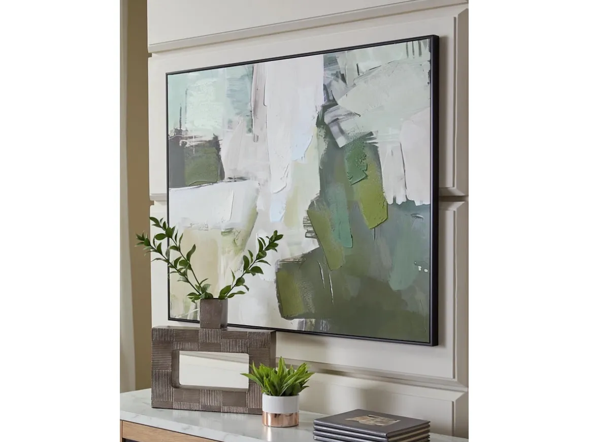 Bring a calming, modern touch to your home with the Vinick Wall Art in Green/Gray/White, a beautifully layered abstract piece that creates movement and serenity in any room. Soft strokes of green, gray, and white blend effortlessly, making it a perfect anchor for living rooms, bedrooms, or entryways where you want to set a soothing, stylish tone. The generous size fills your wall with presence without overwhelming your decor, and its versatile palette pairs easily with contemporary, minimalist, or nature‑inspired interiors. Make your space feel more curated and expressive with this elevated, family‑friendly accent.