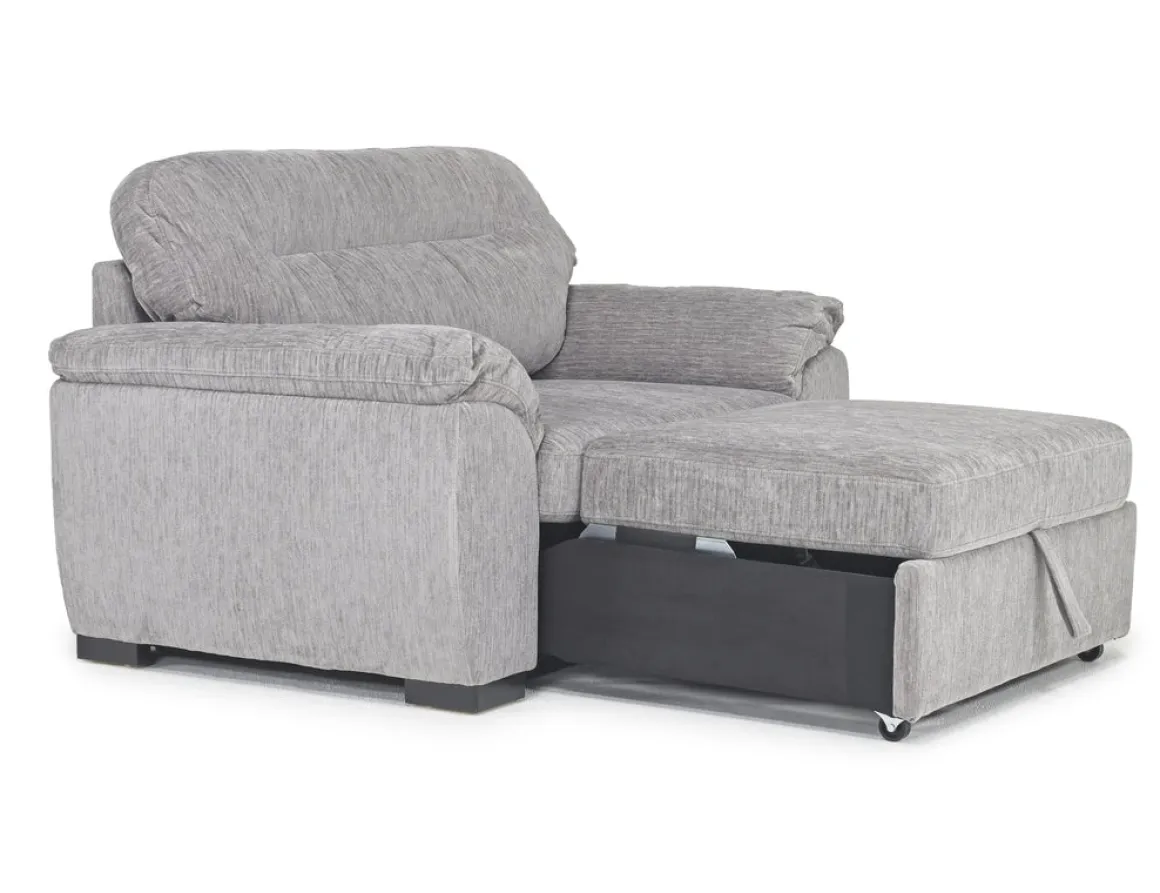 Perfect for small spaces and a quick nap, the Wanda Twin Sleeper Chair in Gray offers cozy seating by day and a convenient sleep solution by night. Wrapped in soft California Gray fabric and filled with foam cushioning, this chair features a manual twin-size pullout sleeper that’s ideal for family rooms, guest spaces, or kids’ rooms. Its casual silhouette with a tight back and loose cushions blends effortlessly into modern and transitional decor, making it a stylish and functional addition to any home.