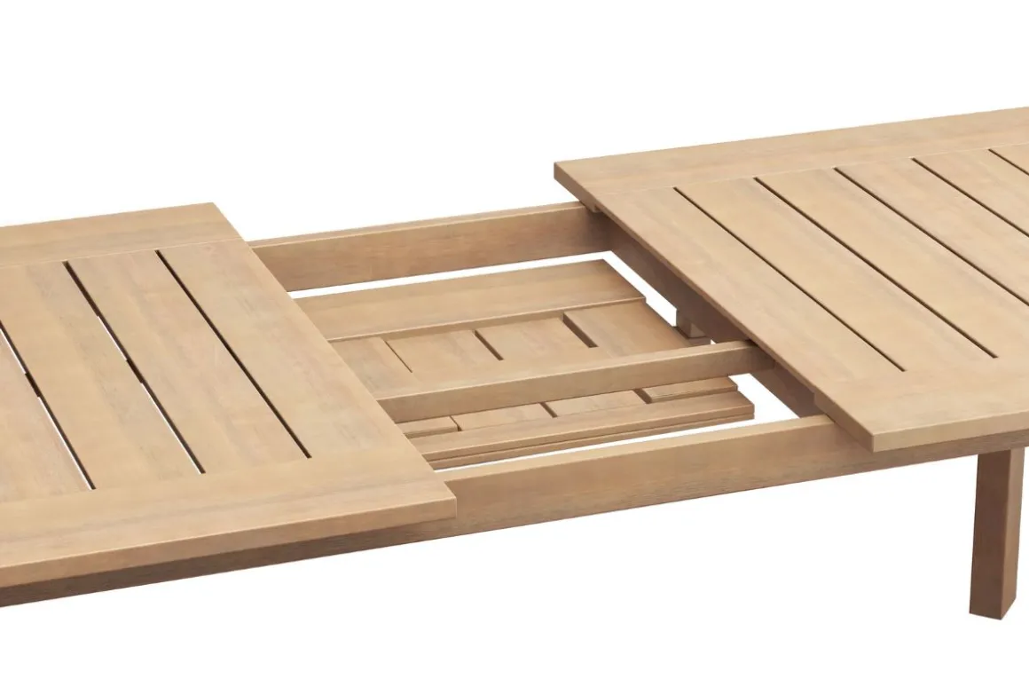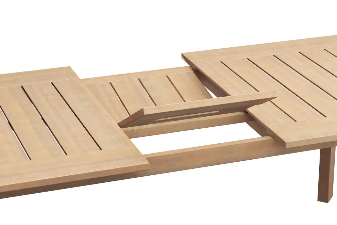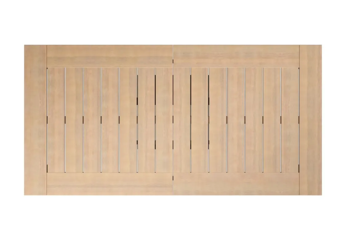 The Wesley Outdoor Dining Table in Natural is designed for those who value both functionality and timeless style in their outdoor spaces. Constructed from FSC-certified Acacia solid wood, it boasts exceptional durability, naturally resisting the elements while showcasing the wood’s beautiful grain through a clear, protective finish. The table’s slatted top not only enhances its classic appeal but also ensures efficient water drainage, making it perfect for year-round use. With an extendable design, it expands using a self-storing leaf, comfortably accommodating up around eight chairs. This spacious dining table is ideal for hosting outdoor gatherings, combining a minimalist aesthetic with a modern, airy feel that effortlessly complements any patio setting.