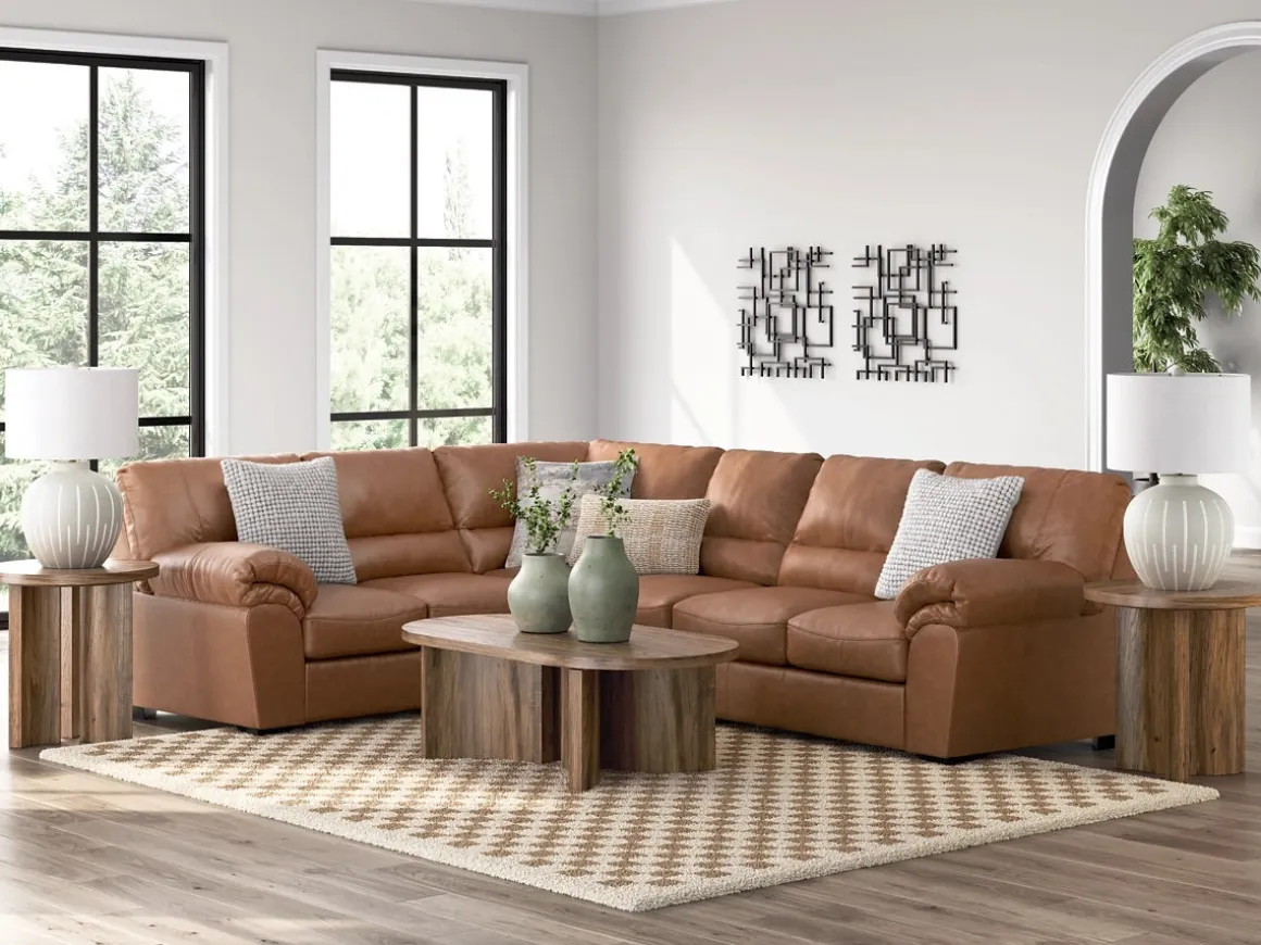 Make room for comfort and connection with the Whitlock Tux Sofa Sectional in Caramel, Left Facing, a spacious seating solution designed for family living. This sectional includes a left-facing 1-arm loveseat, an armless chair, and a tuxedo-style sofa, all wrapped in rich caramel brown upholstery. Foam cushioning offers plush support for everyday lounging, while the structured silhouette adds a tailored touch to casual and transitional interiors. Whether you’re hosting guests or enjoying quiet evenings, this sectional delivers warmth, durability, and timeless style.