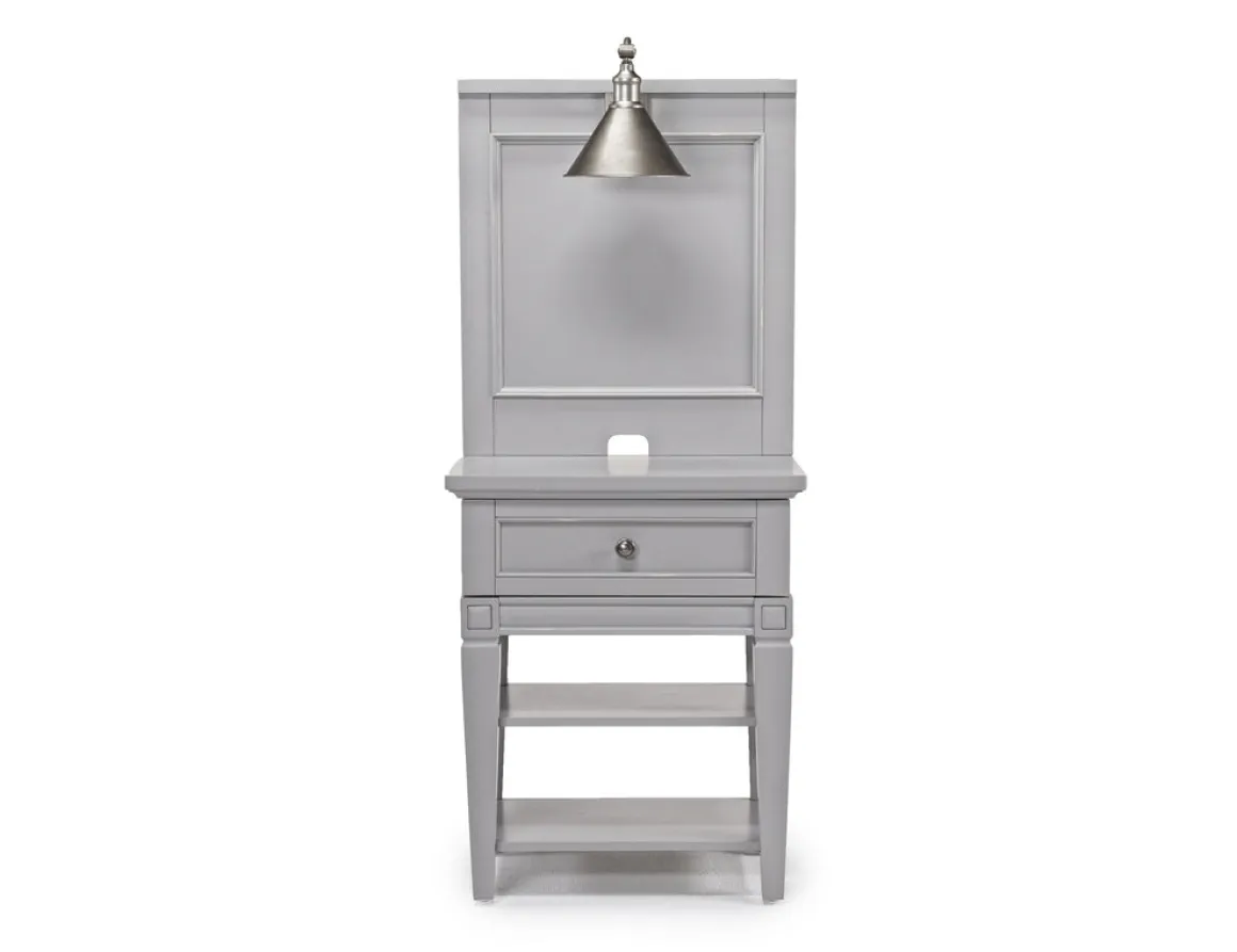 Make bed time more convenient with this Willowbrook Nightstand & Hutch w/ Lamp in Egg Shell White. It provides the perfect space for your phone and a glass of water next to your bed. It also provides convenient lighting while you enjoy your favorite book or a midnight snack. Notice the stylish hardware on the storage drawer, and the two handy shelves. You’ll have plenty of room for books and technology. Product Details: • Charming egg shell white color is a soft, neutral hue • One storage drawer pulls out easily and quietly • Quality wood construction