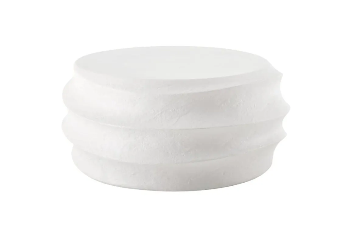 This coffee table showcases the inherent beauty of glass reinforced concrete while the casual white finish complements the organic, undulating and wavy design that feels contemporary and timeless. Suitable for both indoor and outdoor use.