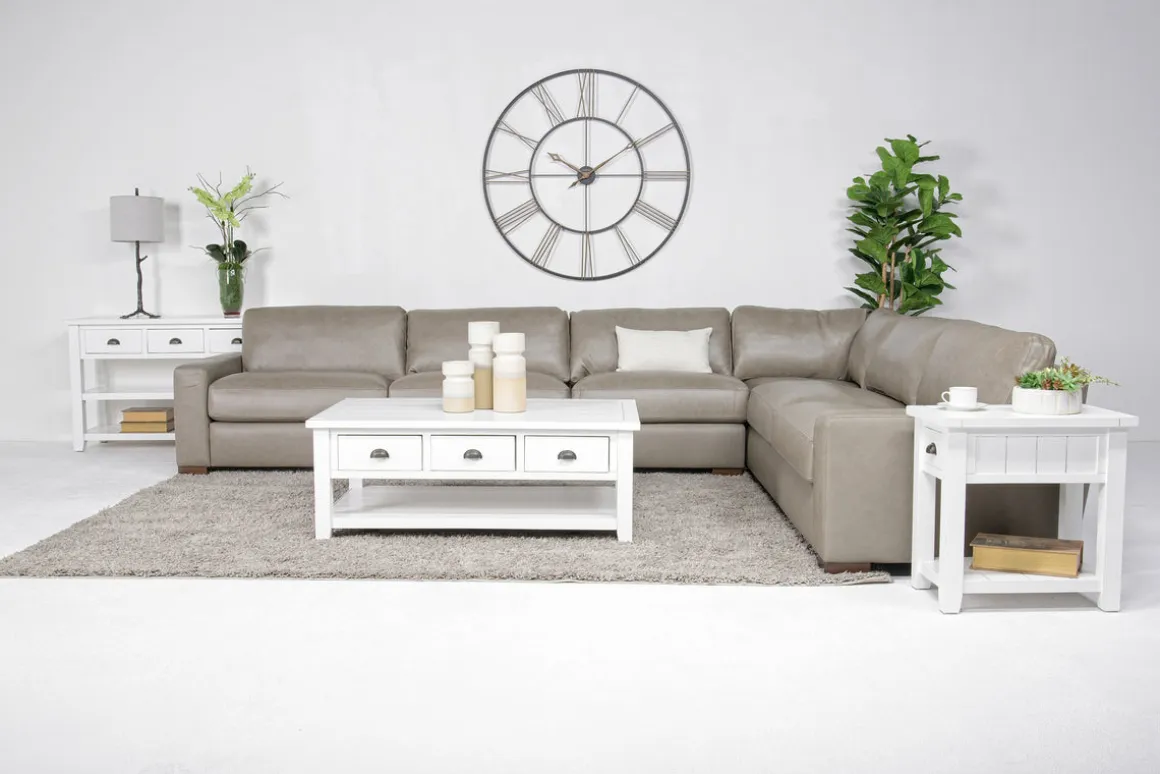 The York 4 Piece Sectional in Chestnut offers expansive seating and luxurious comfort for large living spaces. Upholstered in a rich chestnut colored leather and PVC mix, this four-piece sectional includes plush cushions and deep seating for ultimate relaxation. Its flexible configuration allows you to create the perfect seating arrangement for your home. The warm chestnut hue adds a touch of coziness, making this sectional a standout piece in your living room.Product Details:• Four-piece design offers expansive seating options• Plush cushions provide deep seating and comfort• Perfect for large living rooms or open-concept spaces