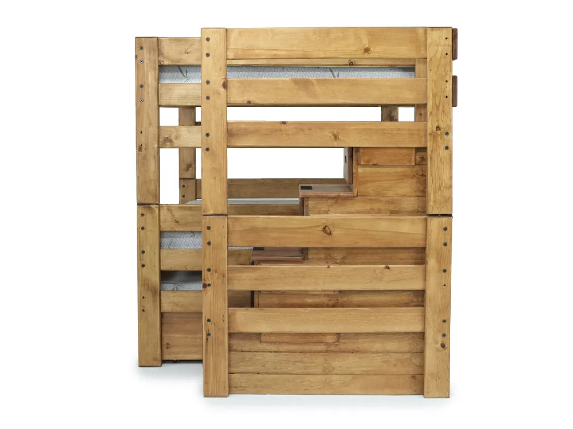 Maximize space and versatility with the Young Pioneer Bunk w/ Storage Steps & Trundle Bed in Natural, Twin/Twin. This bunk bed not only offers comfortable sleeping arrangements but also provides an additional trundle bed for more flexibility. The natural finish adds a touch of warmth to the room and complements various decor styles. Made to last, this Twin/Twin bunk bed is perfect for creating a cozy and adaptable sleeping environment for siblings or guests. Product Highlights: • Twin/Twin bunk bed with an additional trundle bed for flexibility • Natural finish for a warm and versatile aesthetic • Ideal for maximizing sleeping arrangements in a limited space • Durable construction for long-lasting use