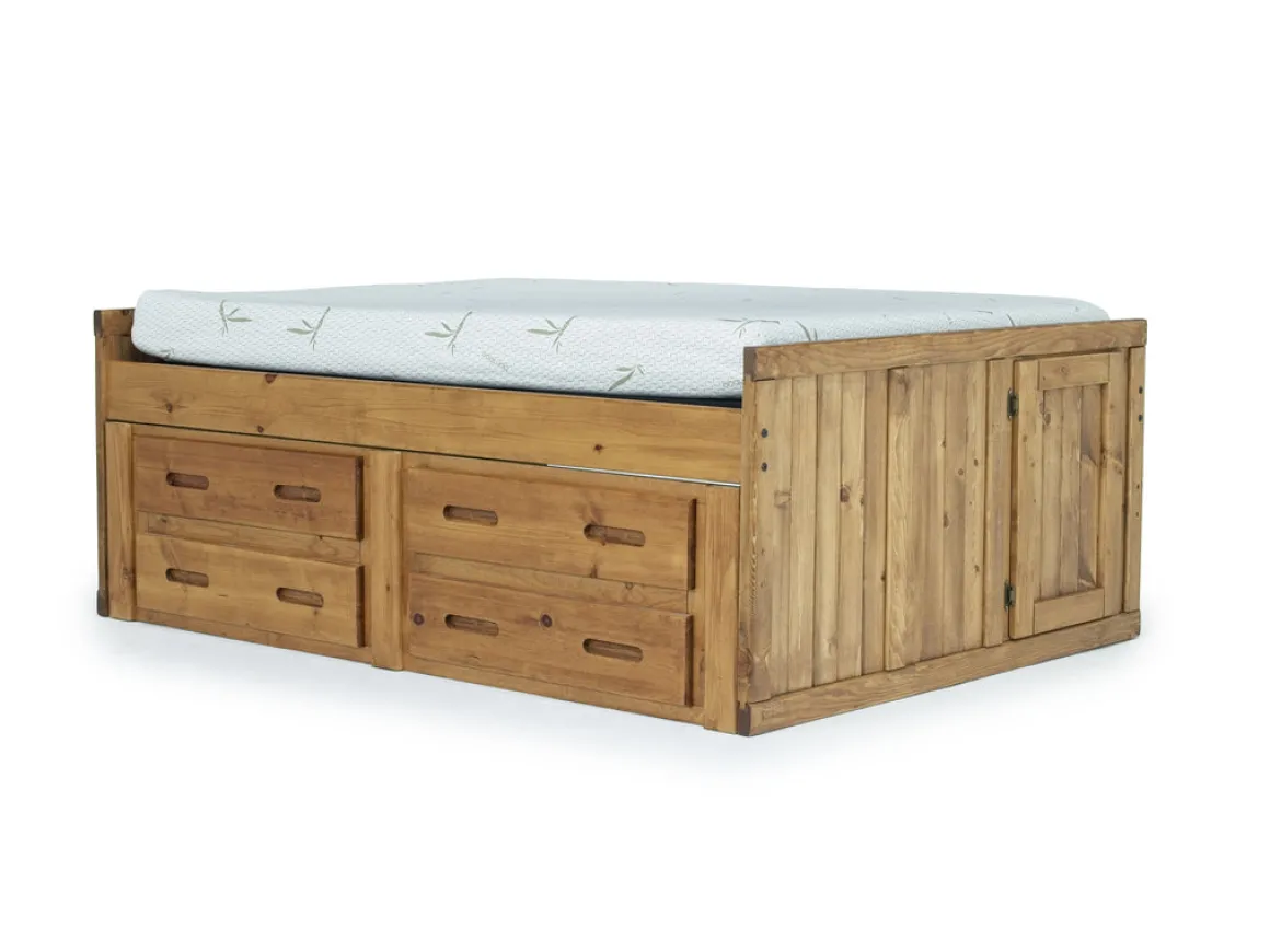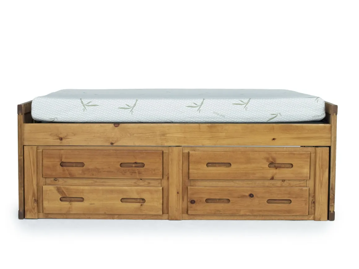 Maximize your child’s bedroom space and style with the Young Pioneer Captain Bed w/ 4 Drawer Storage in Natural, Twin. It features a raised platform design that provides ample storage space underneath. Four built-in drawers offer plenty of room for clothes, toys, or other belongings, helping to keep your child’s room organized. The natural finish creates a warm and inviting look that complements a variety of decor styles.