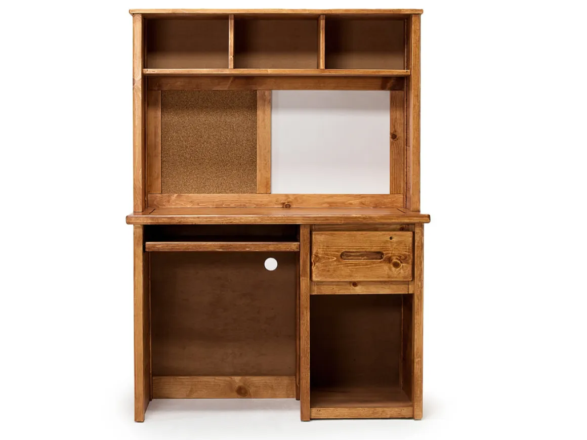 Give your young scholar a fun and functional place to study. The Young Pioneer Desk and Hutch in Natural supplies a sturdy desk top and the matching hutch makes it easy to store books and inspiring mementos. Made from natural wood, the desk and hutch are designed for durability and to age well as your child grows.